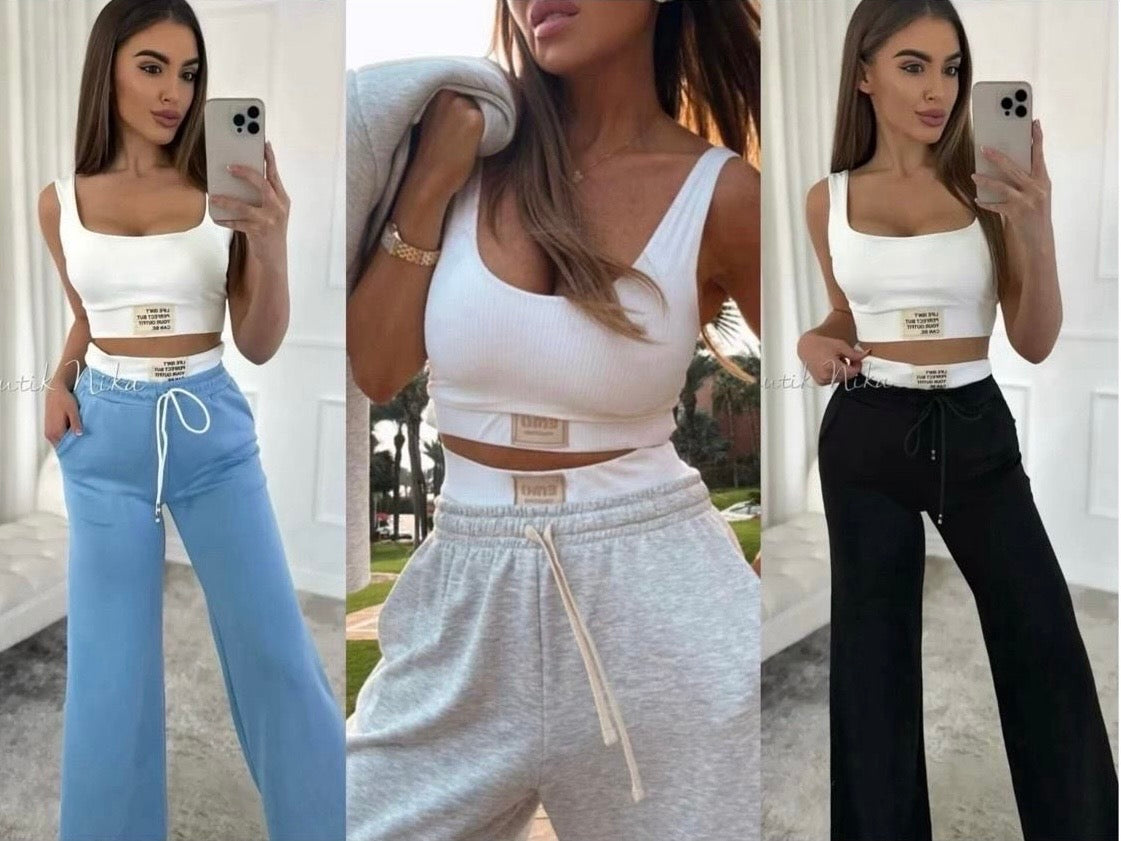 "Un perfetto equilibrio tra comfort e stile con la nostra tuta da ginnastica composta da canotta top crop e pantalone largo. La canotta, con il suo design crop, offre una vestibilità moderna e versatile, mentre il pantalone largo garantisce libertà di movimento, rendendo questo look ideale per allenamenti, attività sportive o semplicemente per un outfit casual e trendy.Questa tuta è perfetta per chi cerca un look sportivo ma sempre alla moda, senza rinunciare al comfort.”